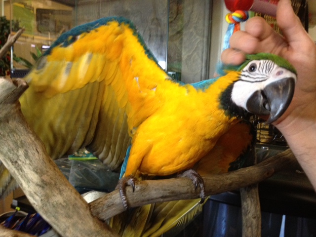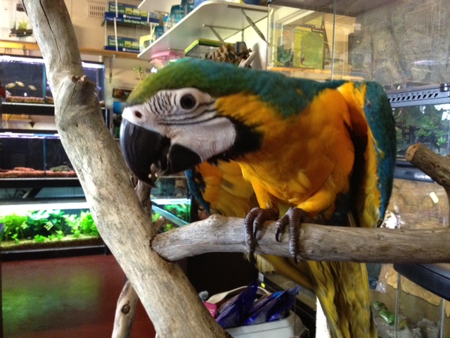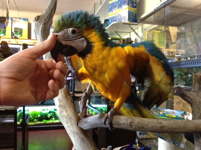 A MALE BLUE AND GOLD MACAW, tame and starting to talk - now SOLD.